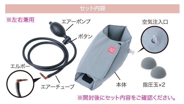 そして、「Dr.PRO フットエアーストレッチ」は本体とエアーポンプが各1個入り。片足モデルですが、右足でも左足でも使用できるデザインとなっています!