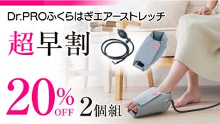 お一人でも多くの方に「Dr.PRO フットエアーストレッチ」をお得にご使用頂きたく、先着順ではございますが【超早割】もご用意させていただきました!割引率は2個組で最大20%OFF♪この機会に是非お求めください。