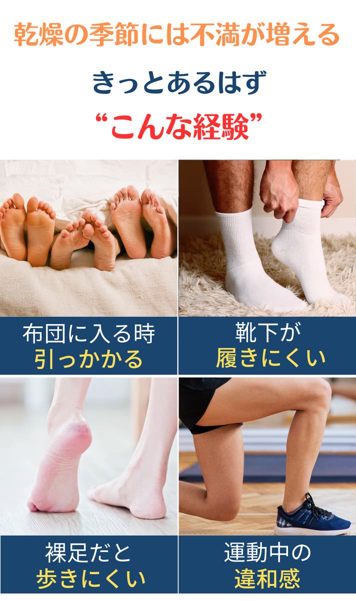 足元の健康を維持する製品を提供するためには?毎日そんなことを悩み続けこの製品は、研究・開発されました。特に乾燥の気になる季節は、足元のガサガサをかかとヤスリで何度削ってもまた角質はできる。いつもその繰り返しで多くの方がお悩みだと思います。そこで私達は使命感からフセラ角質軟化保湿ピーリングスプレー&フットファイルを製品化しました。この二つをセットで使用する事でヒリヒリ感もなく、以前のツルツルな足元が蘇ります。
