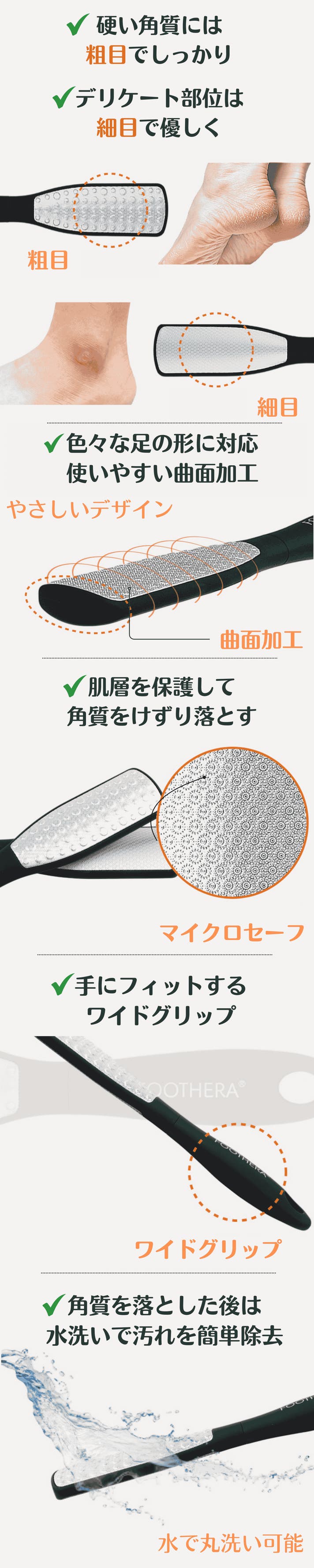 両面(粗目・細目)を上手に使い分けてけずり過ぎに注意しながら角質をポロポロ落とします。