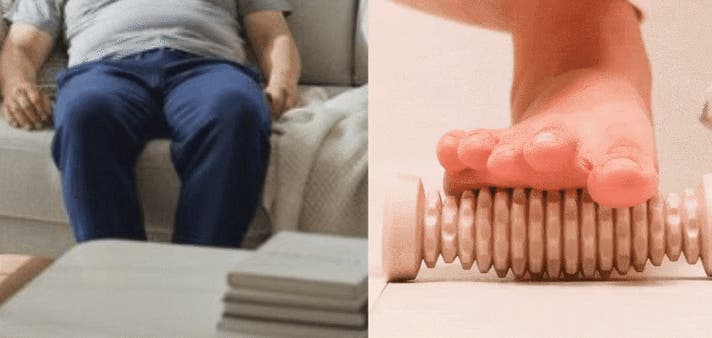 この時、ソファーに座ってテレビを見ながらアーチアップフットローラーを5分だけ転がしてみてください。