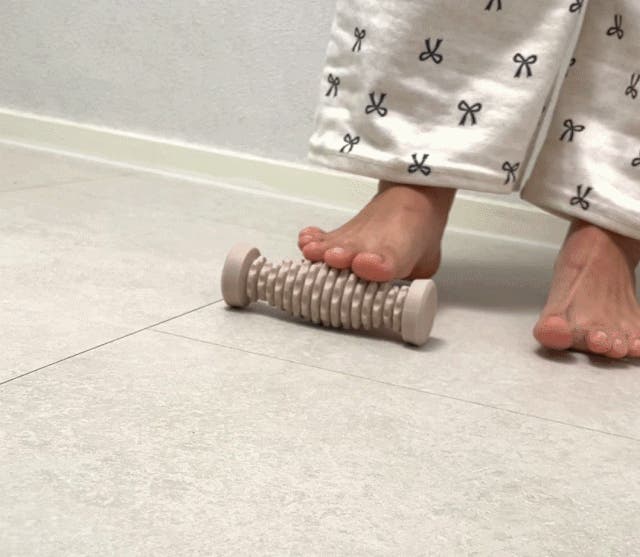 1次リラクシングローラーは足裏を柔らかく刺激し