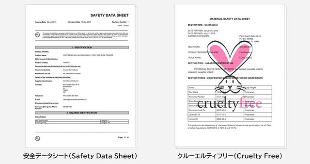 Foot Sense(フットセンス)は、第三者検査機関にて安全データシート(Safety Data Sheet)を作成した安全な製品です。