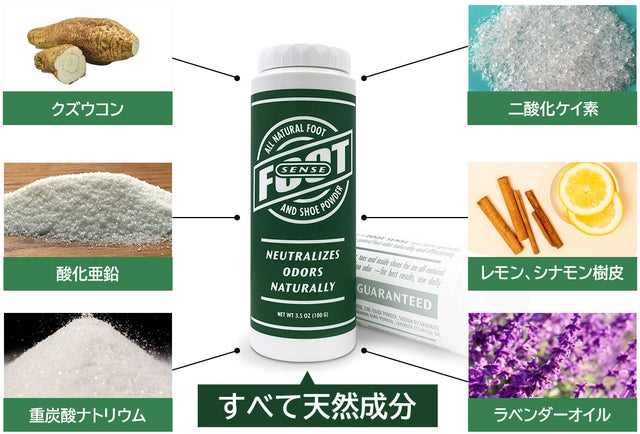Foot Sense(フットセンス)は、全米大ヒット『100%天然成分』の抗菌・消臭パウダーです。