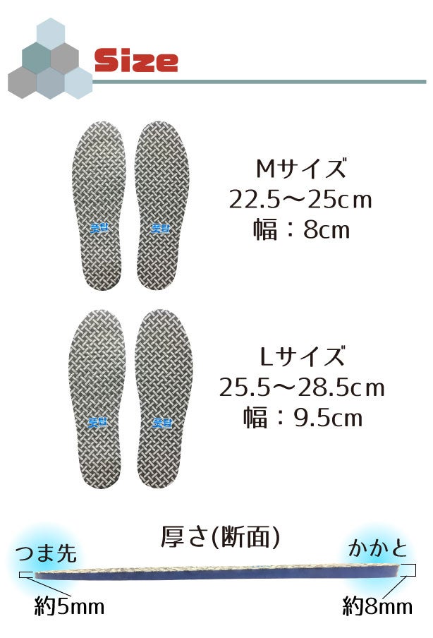 M(22.5〜25cm)・Lサイズ(25.5〜28.5cm)