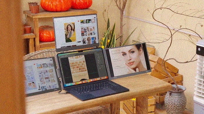 ノートパソコン1台だけでは限られていた作業スペースが、画面を追加することで一気に4倍の広さに拡張されます。メイン画面で作業をしながら、左右の画面で資料・メール・Webページを同時に表示。さらに上部モニターには参考資料やメモを常時表示できます。