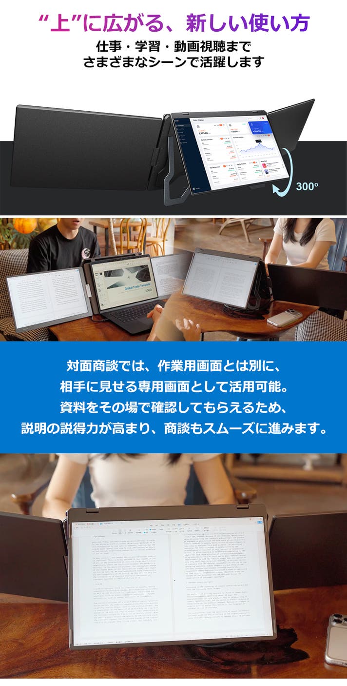- サードモニターは、上方向にも拡張することで独創的な活用法が生まれる!上下左右で作業を効率化!