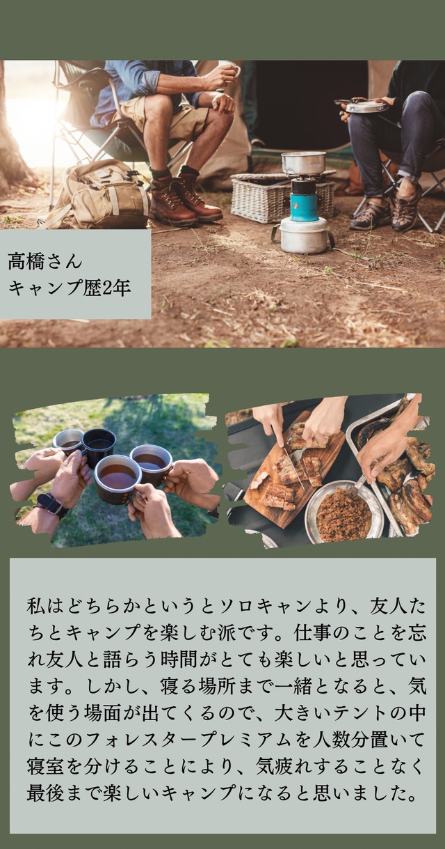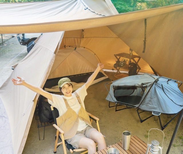 友人とキャンプに来ても寝室を分けることができ、さらに快適キャンプに!