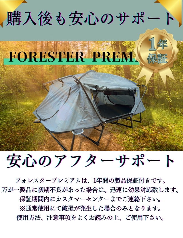 フォレスタープレミアムは数分で設営でき、重心も安定、素材が丈夫なため季節、天気を問わず、四六時中設営したままにできます。