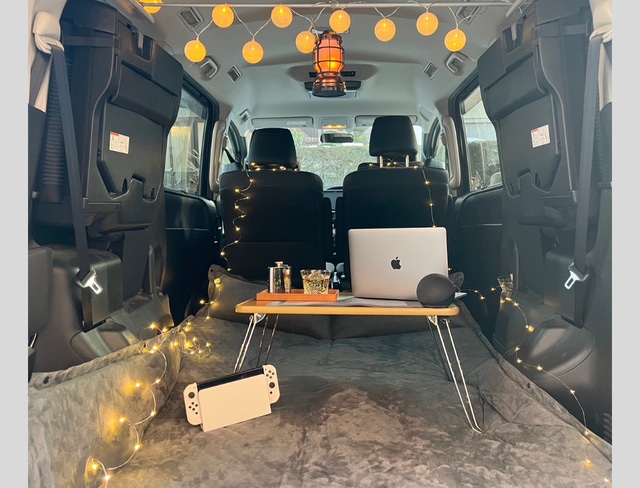 専用の枕付きインフレーターマットも搭載、クッション性に優れ、ふわふわなフロック素材を使用、ラグジュアリーな雰囲気を感じさせてくれます。