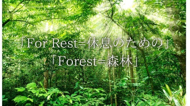 「森林で過ごすような、あの贅沢な休息を人生に取り入れていただきたい!」そんな思いから、「For Rest=休息のための」、「Forest=森林」のダブルミーニングより、