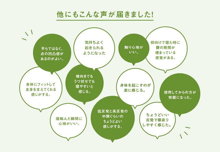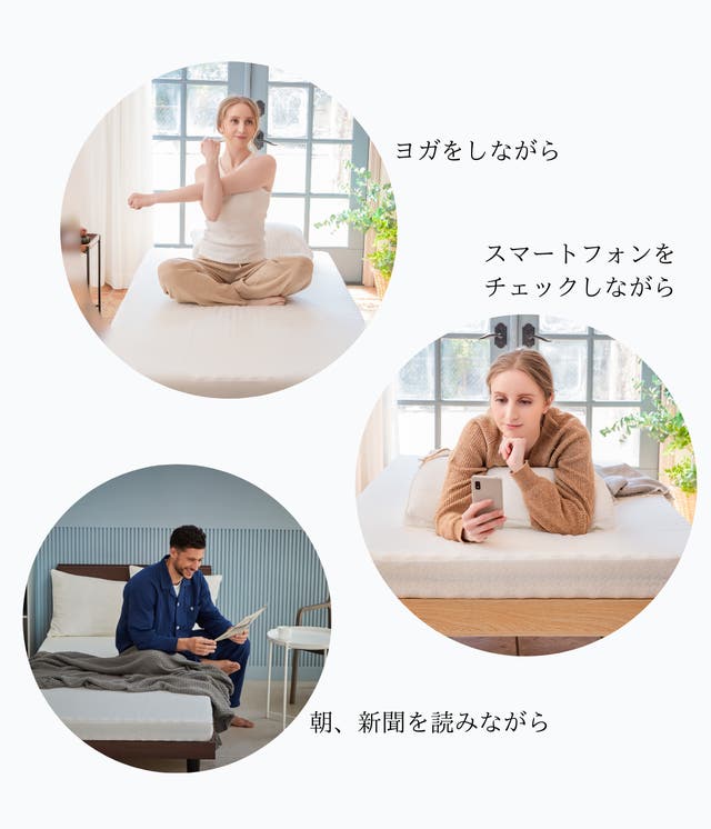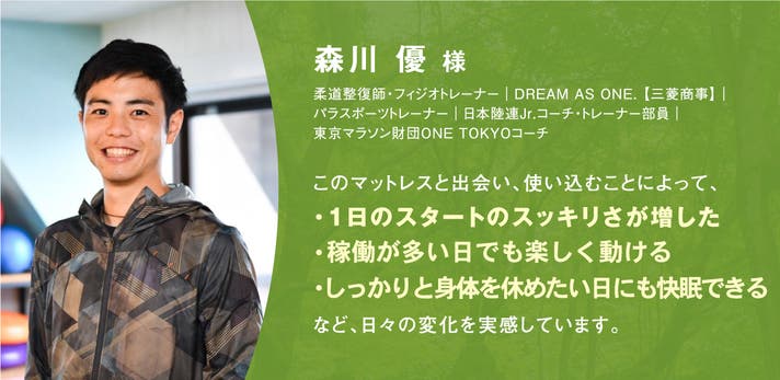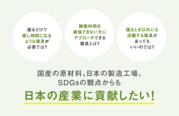 日常生活において高いパフォーマンスをサポートし、よいマットレス(睡眠環境)を作ることで、「何をやってもはかどらない」というサラリーマンや、家事・育児に追われる皆様を元気にしたい!と開発をスタートしました。