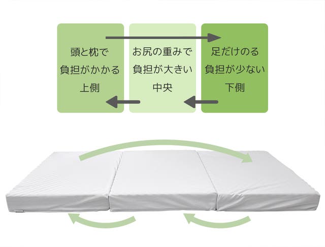 定期的に裏表ローテーションすることでへたりの発生を抑えることができ、より長持ちします。