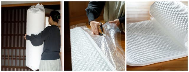 到着時|くるくると丸められた状態で届きます。女性一人でも軽々運べます。