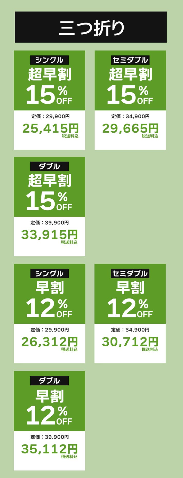【超早割15%off】10cm 3つ折り シングル <4月から順次発送>