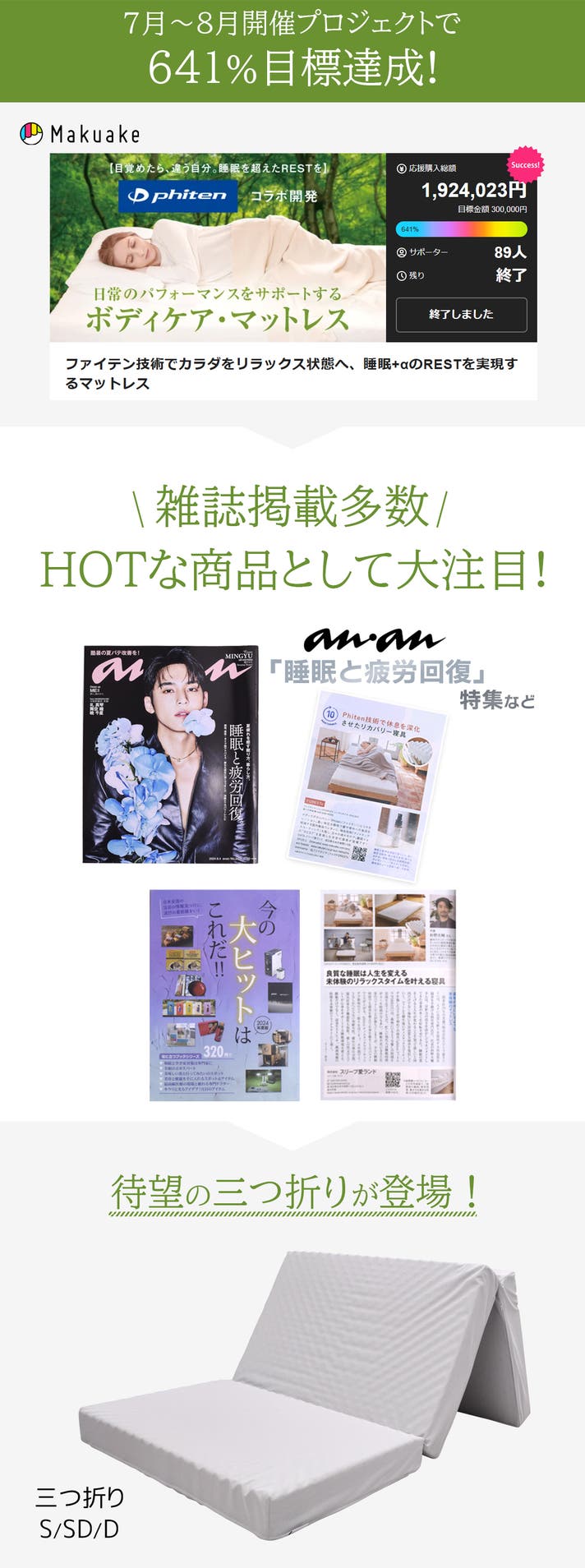 「Makuake(マクアケ)」は、実行者の想いを応援購入によって実現するアタラシイものやサービスのプラットフォームです。このページは、 プロダクトカテゴリの 「【Phiten最高峰技術】睡眠+αのREST実現するコンディショニングマットレス」プロジェクト詳細ページです。