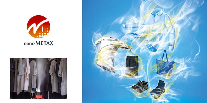 ファイテン最高峰技術「ナノメタックス」に光テクノロジー「健光浴®」を照射させて、霧状に噴霧コーティングする水煙加工を用いたファイテンの最先端技術です。
