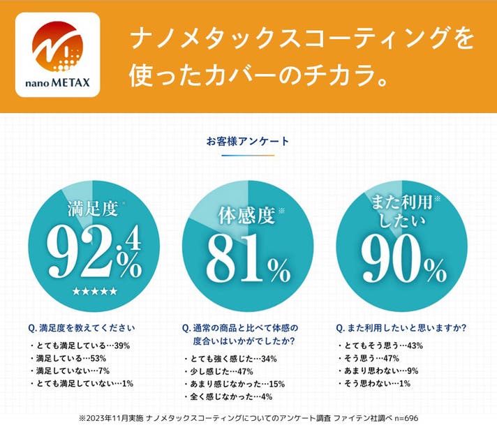 一流アスリートも信頼している「ファイテン」の技術を採用しました。実際に私も、ファイテンの数多くの商品に触れ、様々なアスリートが感じるファイテンの技術を体験し、まるで身体がケアされる感覚でした。その技術から生まれたナノメタックスコーティングをカバーに採用しました。