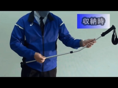 従来の歩行杖は上からの荷重に対して、曲がることを求められていません。従って、緩衝機構を備えた製品もあります。新しい形状の歩行杖は上からの荷重に対して、杖本体を弾性体として利用することによって、杖本体に緩衝機構を持たせるとともに、反発力は推進力として利用することが可能になりました。