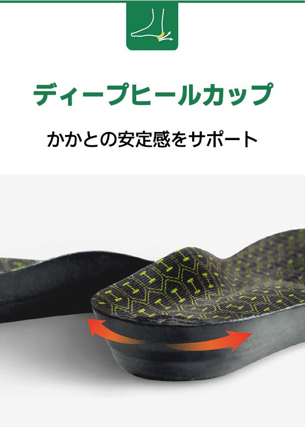 かかとの衝撃吸収と安定性を高めるディープヒールカップ !
