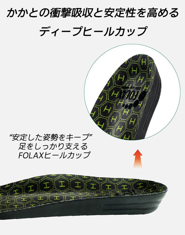 “安定した姿勢をキープ” 足をしっかり支える FOLAXヒールカップ
