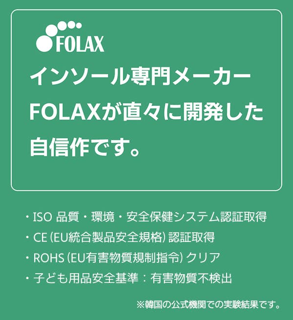FOLAXは認証試験機関のテストをクリアした品質の高いインソールのみを製造しています。