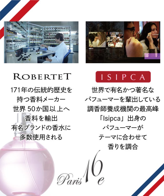 フランス171年以上の歴史を持つ伝統的な香料メーカー「Robertet」の香料をそのまま輸入し、世界的に有名なパフューマ―を輩出しているフランスの調香師養成機関「Isipca」出身パフューマーが調合。