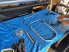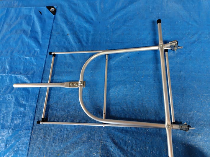 「マモルくん」は、軽くしたい、だけど、頑丈に作りたい。そのために、「マモルくん」はアルミパイプでフレームを構成しました。アルミパイプは曲げ工程を少しでもミスすると折れたり脆弱になったりしますが、製作者の熟練の技術でアルミパイプの曲げ工程を行っています。