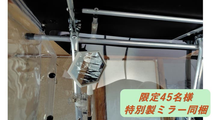 限定で45名様に、特別製ミラーを同梱いたします。「マモルくん」のアルミフレームにぴったりと取り付けられるように、特別に製造しているミラーです。
