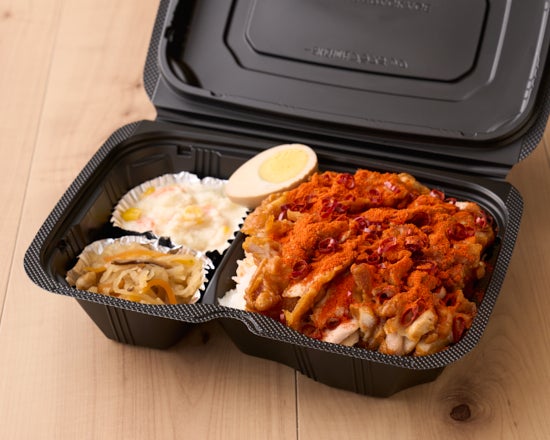 特にカエンペッパーをふんだんに使用した(トッピング)辛さ増しの唐揚げ弁当は、