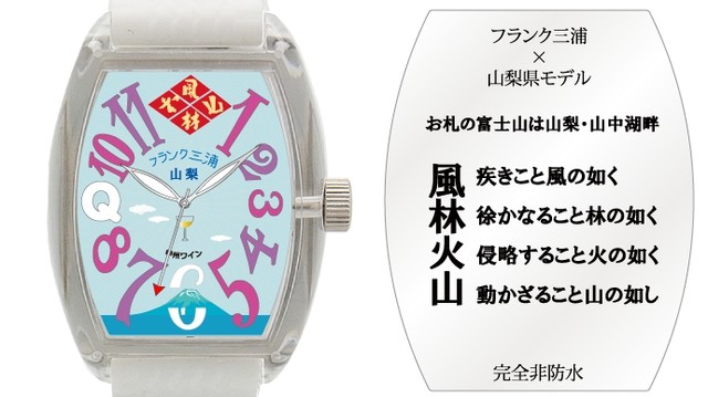 静岡県との永遠に終わる事の無い「富士山はオレのもんだ論争」を繰り広げる山梨県。世界遺産・富士山を豪快にデザインし、クレバーな戦略家・武田信玄を彷彿させる知的でクールな時計に仕上がった!!