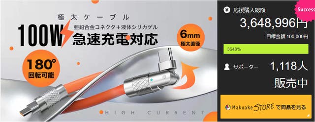 「Makuake(マクアケ)」は、実行者の想いを応援購入によって実現するアタラシイものやサービスのプラットフォームです。このページは、 プロダクトカテゴリの 「極太、絡まらない、180度回転可能!最大100W急速充電対応マグネットケーブル!」プロジェクト詳細ページです。