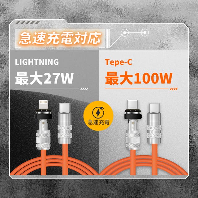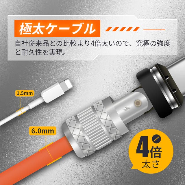 今回はそんな極太ケーブルから【1.5メートル仕様】、【180度回転可能】、【マグネット式】を発売することに決定いたしました。