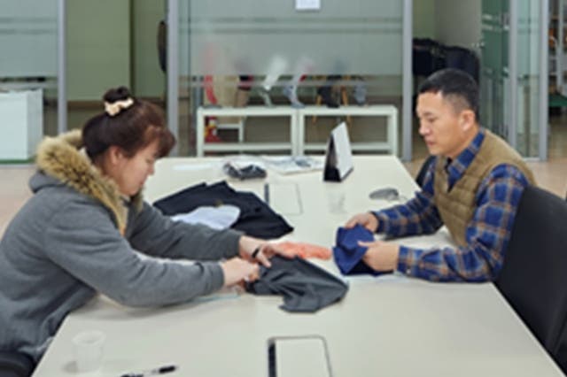 私の不便さはすぐに意志に変わり、着用していたパンツを直接改良してみたり、製作段階では私が改良したサンプルを基盤に直接的な生産参加につながりました。