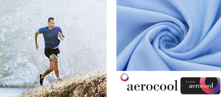 エアロクールは繊維表面に形成された微細な通路を利用して素早く水分を吸収し、優れた乾燥機能を発揮する代表的な機能性織物です。体から発生した汗を迅速に排出し、身体を快適に保ち、活動的なスポーツやレジャー活動に適した生地です。