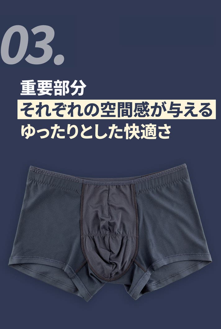 3D設計されており、パンツを履いた後に再び触る必要がなく、主要部分が上下の空間に自動的に分離され、楽で衛生的な構造です。 重要な2ヶ所を上下をしっかり分離してくれるので、肌がくっついてできる臭いや汗を防ぐのに役立ちます。