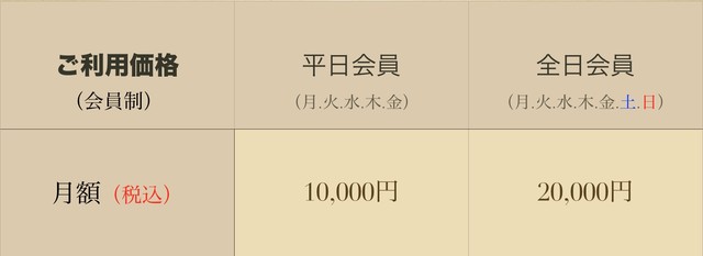 【限定10名様】FREE'S Space 平日会員(2ヶ月)