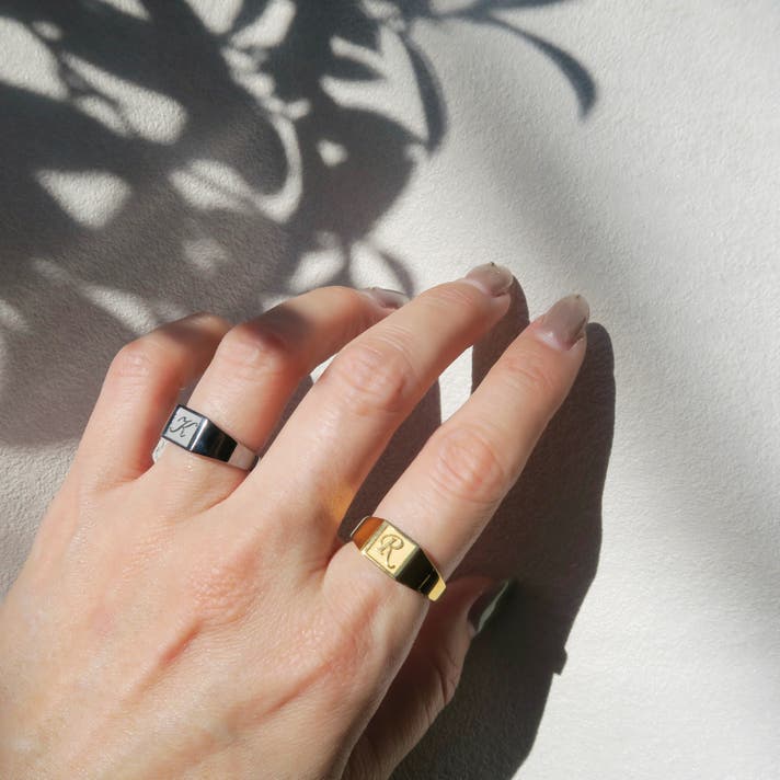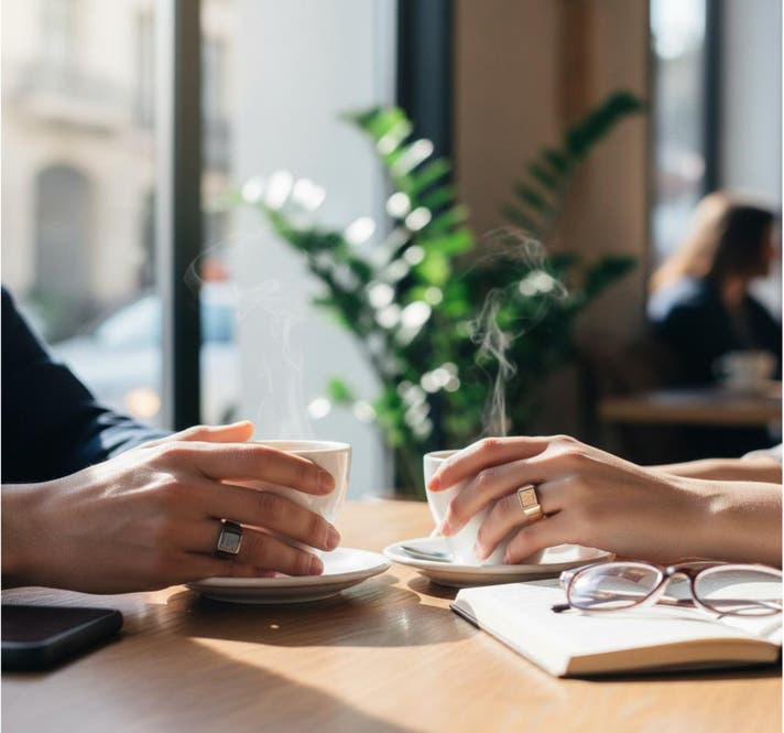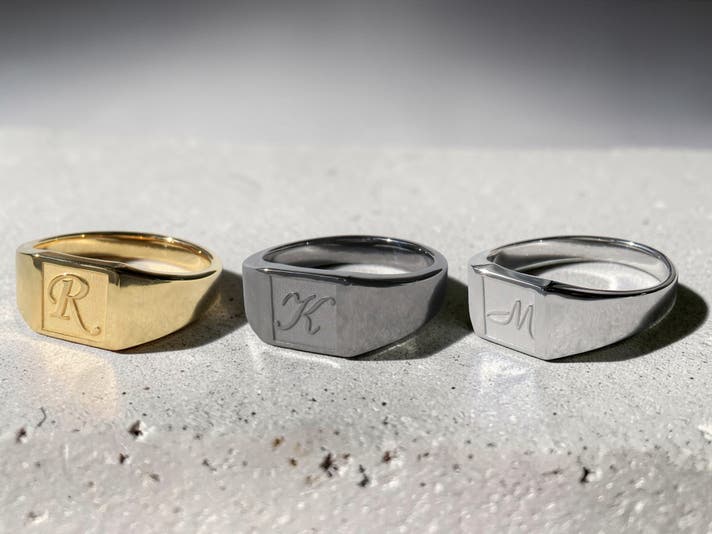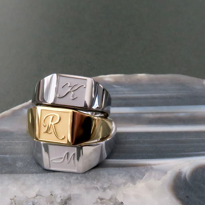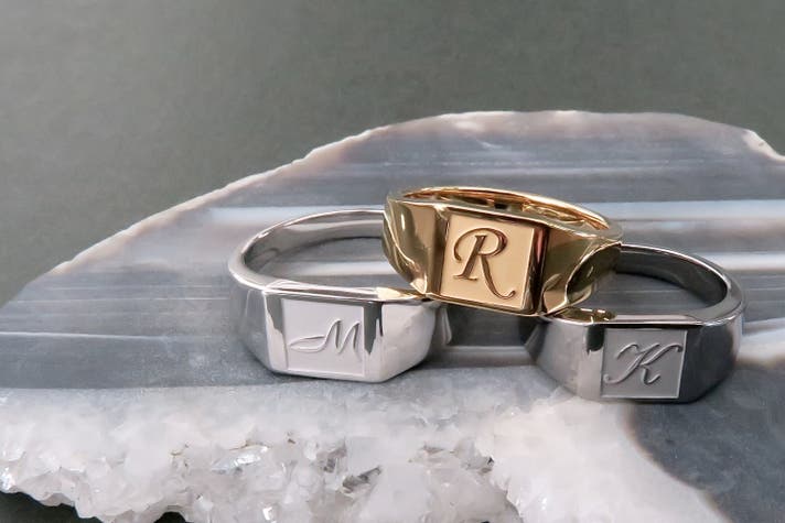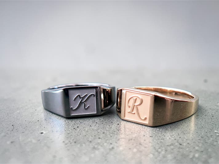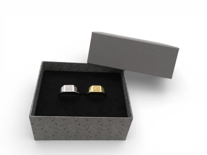 Scene 2(パートナーとのペア着用): 性別を問わず取り入れやすいフォルム 。同じ文字を刻む、互いのイニシャルを交換する、仕上げカラーを変えて対比を楽しむなど、関係性そのものをデザインできます 。