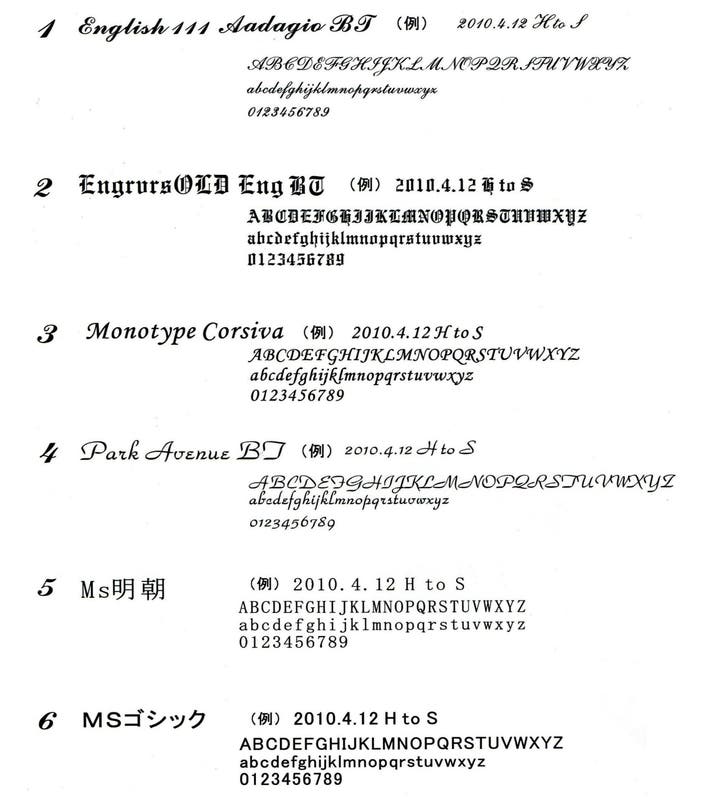 ■彫刻する文字のフォント(6種類)