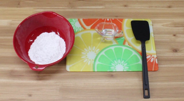 ①ボウルにフリーズソルトの素を入れて、水またはフリソルウォーターを注ぎます。水分が全体に馴染むまで混ぜてください。触った感じは、硬めのシャーベットくらいが目安です。