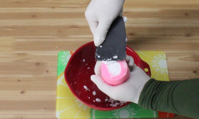 ※フリソルウォーターを使用して成形するときは、ゴム手袋を着用してください。お肌がデリケートな方は、水のみで成形するときでもゴム手袋の着用をお勧めします。