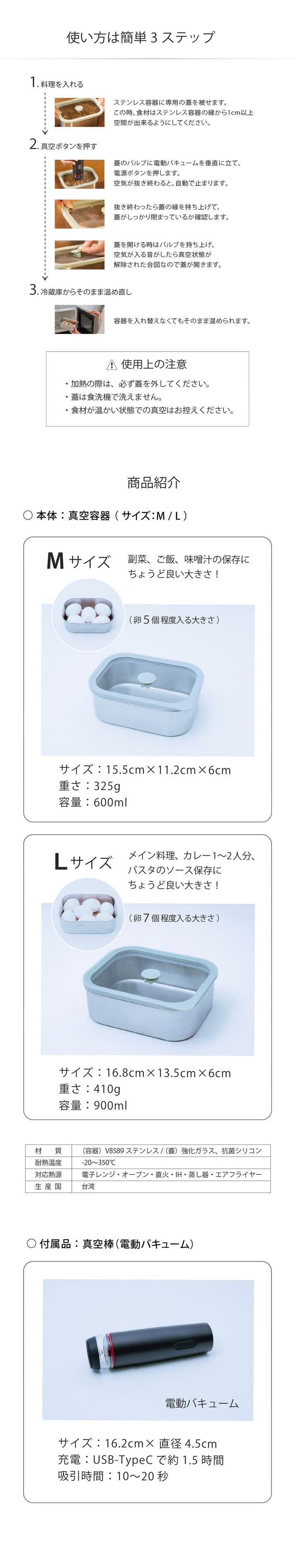 - 真空保存とIH・電子レンジ加熱を両立。作り置き料理が超便利で美味しくなるステンレスタッパー