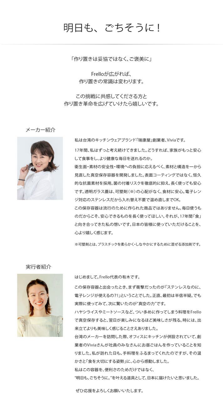 「Makuake(マクアケ)」は、実行者の想いを応援購入によって実現するアタラシイものやサービスのプラットフォームです。このページは、 プロダクトカテゴリの 「作り置き料理がずっと、ぐっと美味しく。保存と時短調理を極めたステンレスタッパー。」プロジェクト詳細ページです。