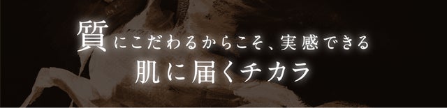プラセンタと言っても、その品質や濃さ、効果は様々です。肌のために使うなら、馬がどんな環境下で飼育され、どのような製造方法で作られたプラセンタなのかをしっかりと把握することが大切です。なぜなら…それこそが「プラセンタのチカラ」を大きく左右してしまうから。ホースリッチェストは、ハリ・弾力・くすみ*・透明感・キメの乱れなど、大人の肌悩みにしっかりとアプローチするために、“チカラ強い品質”という点に徹底的にこだわりました。