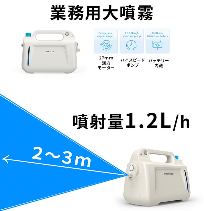 本器FRIRUSはプラズマをミストに含ませて噴射する方法を開発しました。