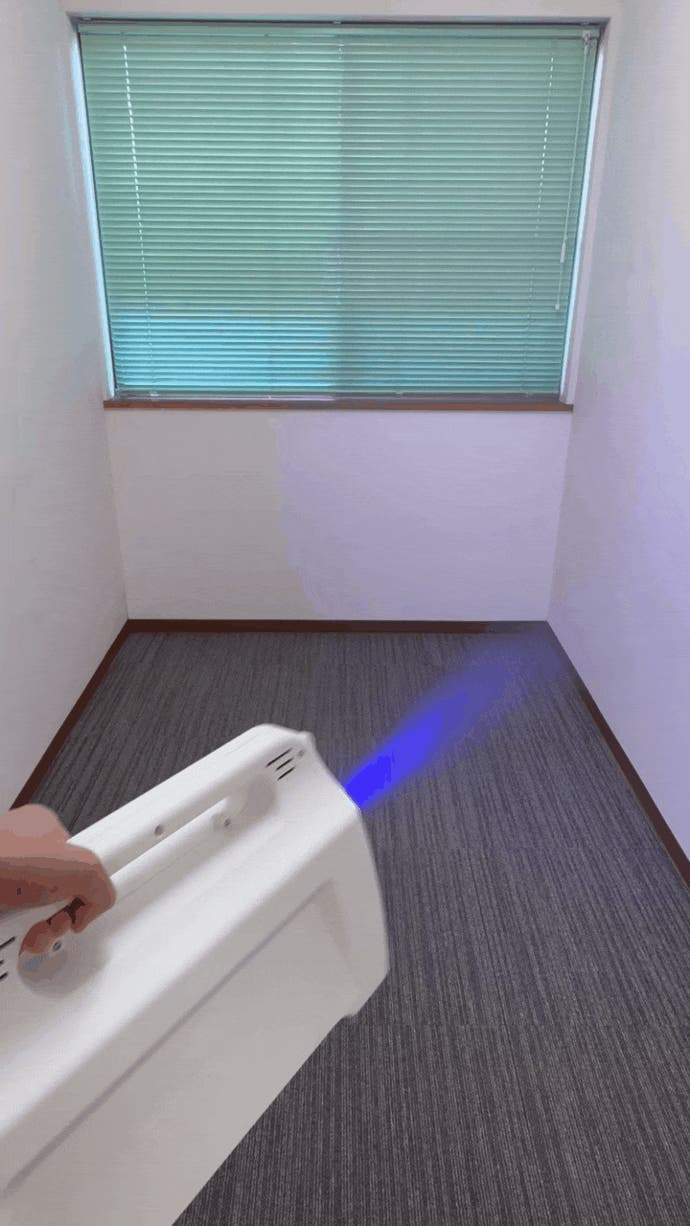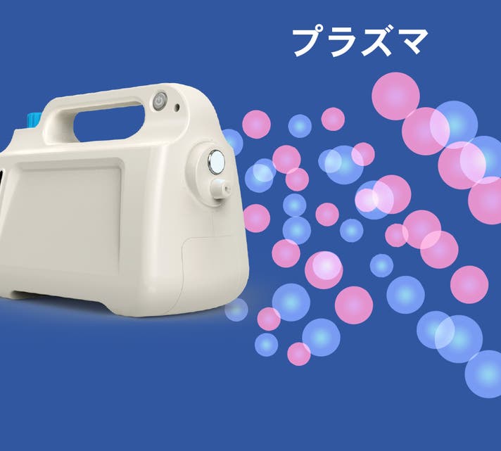 本機器はプラズマ生成後、ミストにのせて散布する技術です。