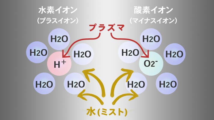 ※プラズマイオンはプラズマ放電によって生成される、プラスイオンとマイナスイオンのことです。