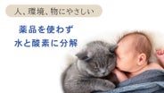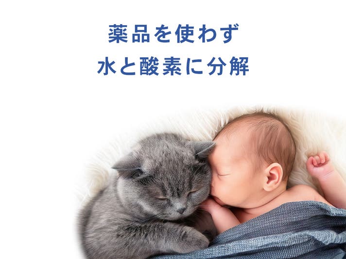 除菌は薬品や紫外線などを使用せず、水分と酸素で分解します。