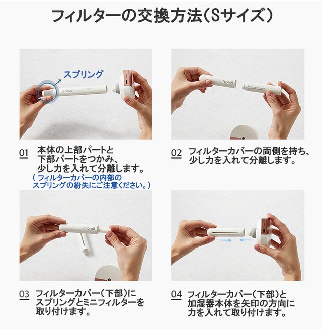 A. 加湿器のフィルターは消耗品のため交換が可能です。 コットンフィルターはより長く使えます。1〜3ヶ月に1度交換してください。 (フィルターは自社サイトにて販売予定)