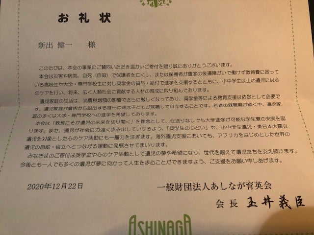 あしなが育英会に振り分けて寄付いたします